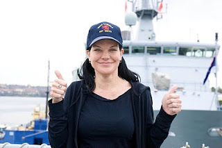 Pauley Perrette meets with the Australian Defence Force Investigative Service [ ADFIS] aboard HMAS Kanimbla at Garden Island, Sydney. Pauley plays forensics expert Abby Sciuto on the television series “NCIS”, an American TV show.