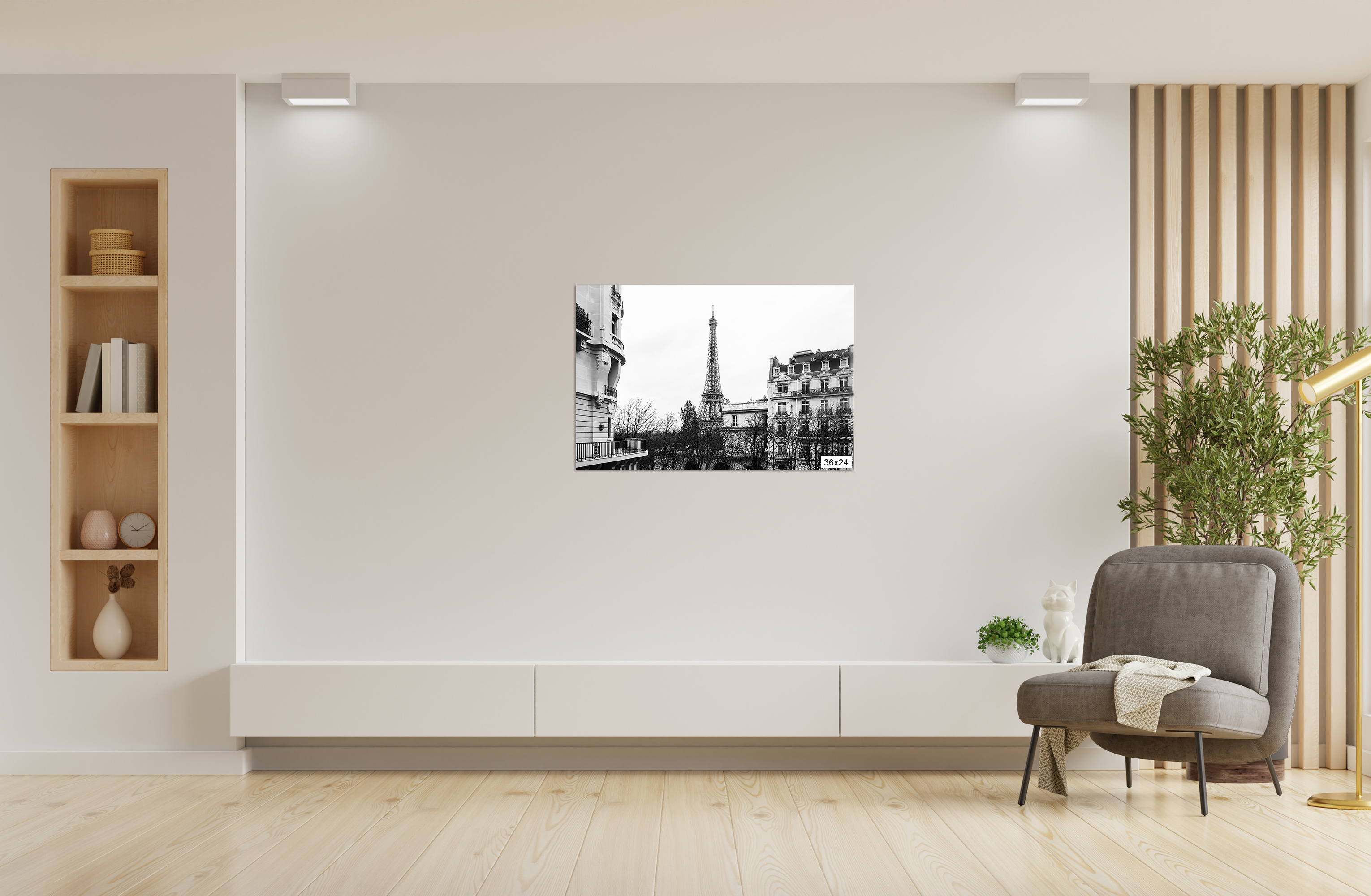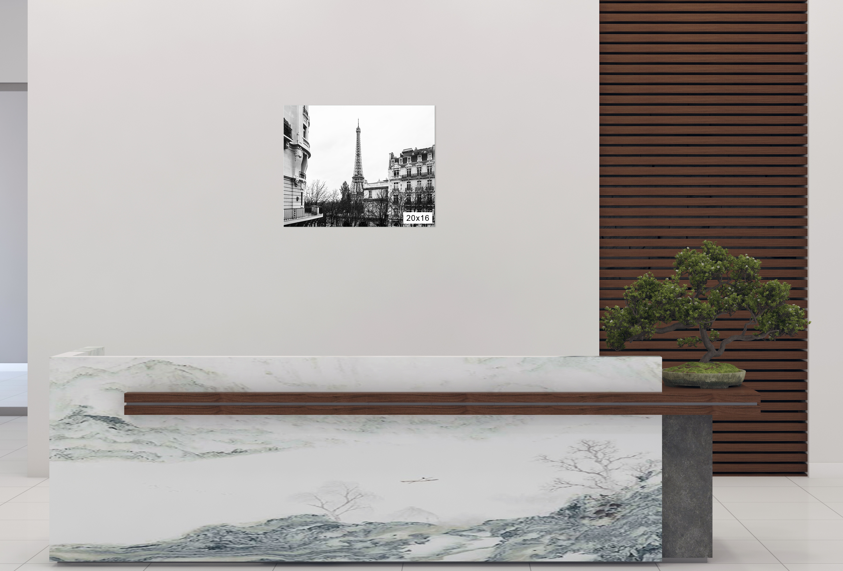 3) Framed Canvas which comes with a high-quality smooth canvas fabric stretched print, within a lightweight durable aluminum frame in both a white and black finish. The Canvas Frame’s unique interchangeable art canvas system allows for quick and easy updates of your artwork. Ideal for corporate commissions, hotel lobbies, retail spaces, hospitality, or indoor public spaces.