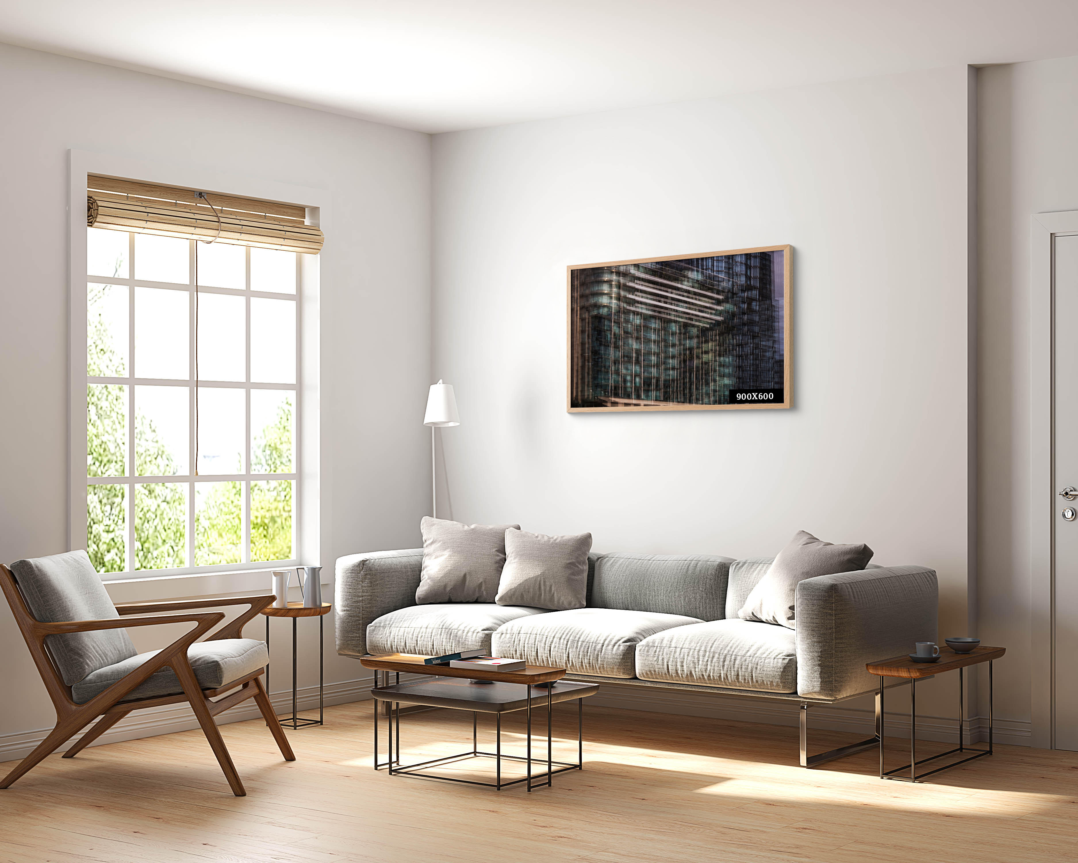 3) Framed Canvas which comes with a high-quality smooth canvas fabric stretched print, within a lightweight durable aluminum frame in both a white and black finish. The Canvas Frame’s unique interchangeable art canvas system allows for quick and easy updates of your artwork. Ideal for corporate commissions, hotel lobbies, retail spaces, hospitality, or indoor public spaces.